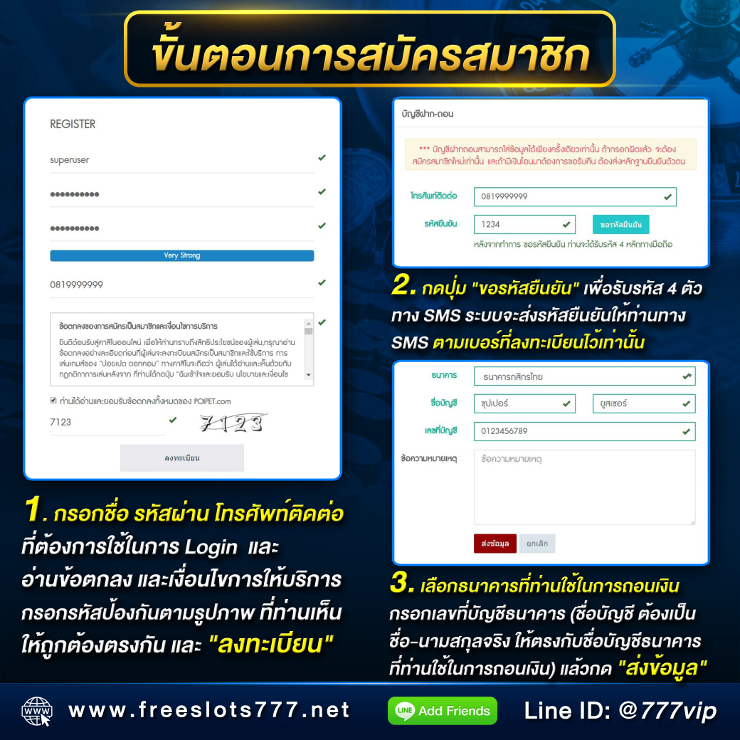 เพื่อใช้ในการยืนยันตัวตน, ใช้ยืนยันการถอนเงิน, และรับโปรโมชั่นต่างๆ
